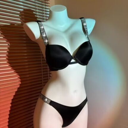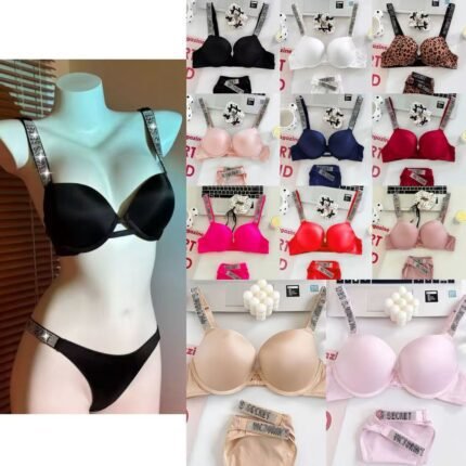 Victoria’s Secret Rhinestone Strap Push-Up Bra Set | Sexy Seamless Thong Lingerie (Multi-Color Available)