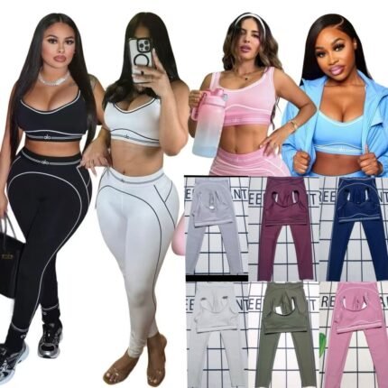 Alo Contrast Piping Active Set | High-Waist Butt-Lifting Leggings + Cropped Sports Bra (Multi-Color Available)