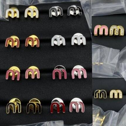 Miu Miu Luxury Logo Stud Earrings | Classic Versatile Ear Jewelry (Multi-Color & Style Options Available)