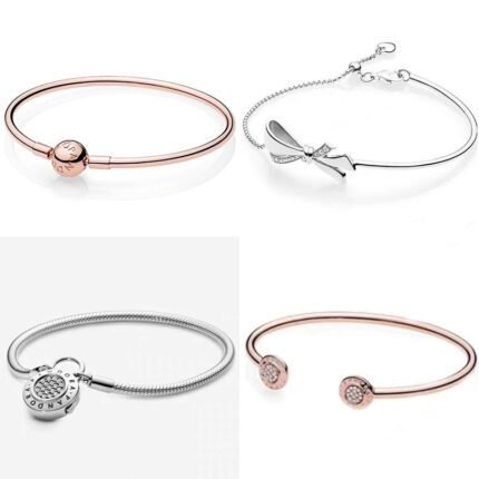 New Fashion 925 Silver Bow Concentric Lock Chain Bracelet