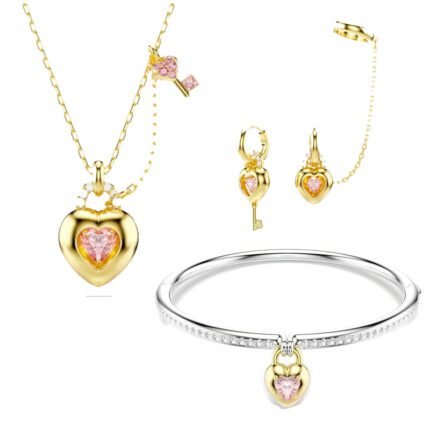 Swarovski Heart & Key Collection | Pink Crystal Heart Lock Necklace, Earrings & Bracelet Jewelry Set