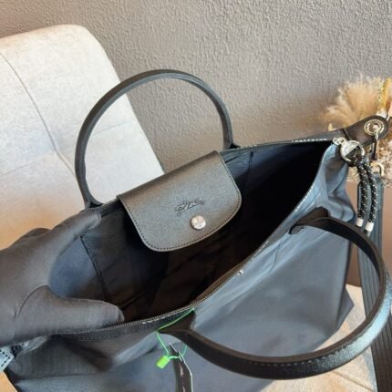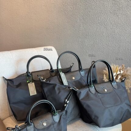 Longchamp Le Pliage Green Recycled Canvas Tote Bag – Multiple Sizes Available, Black Handheld & Shoulder Bag
