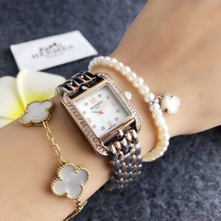 HERMES 8477B Luxury Crystal Steel Band Watch | Versatile Fashion Unisex Timepiece