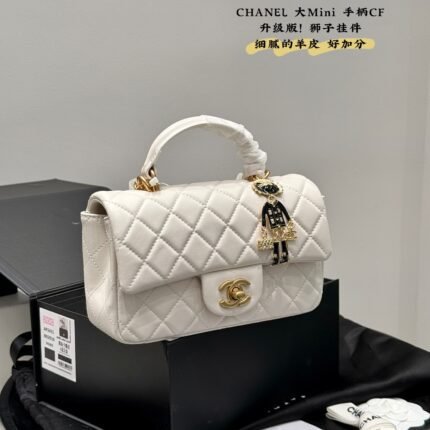 Upgraded version with small lion pendant, Chanel Mini CF handle gold-plated hardware! The CF with a handle is more elegant than the regular CF, and when paired with a skirt, it exudes a French style. Exquisite sheepskin and handle design make it even more refined
