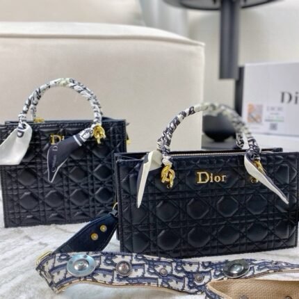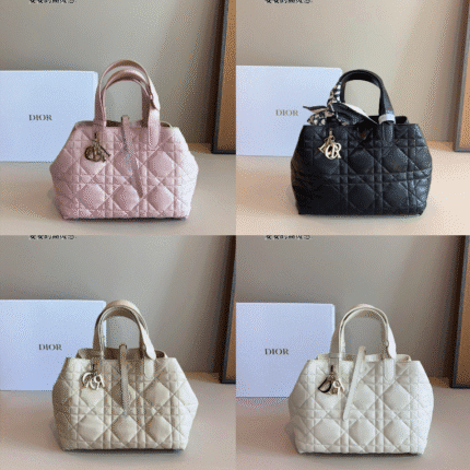 Dior Quilted Leather Tote Bag Collection: Two Sizes with Signature Charm Details (Small:22×14cm / Large:28×21cm)