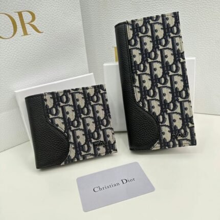 Dior Oblique Canvas Wallet Set: Two Sizes with Signature Monogram Pattern (Small:11×10×1.5cm / Large:17.5×8.5×1.5cm)