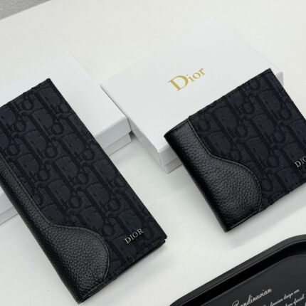 Dior Oblique Canvas Wallet Set: Two Sizes with Signature Monogram in Black (Long:17.5×8.5cm / Short:12×11cm)