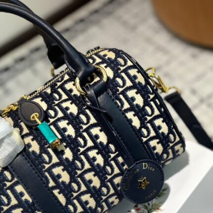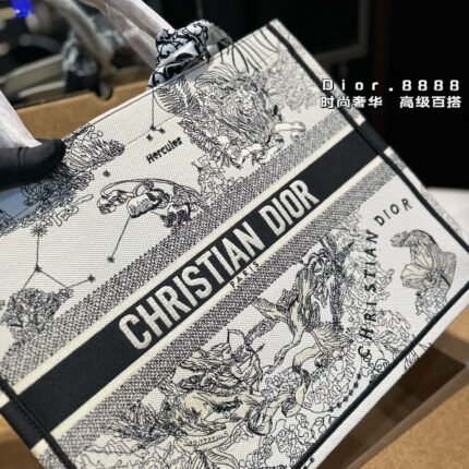 Embroidered shopping bag, combining two different styles of handsomeness and elegance. The bag features a fully embroidered design with double layered original materials on both the inside and outside