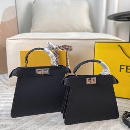 Fendi Peekaboo Mini Bag Set: Two Sizes with Signature Hardware & Scarf (Large:27×21cm / Small:23×18cm)