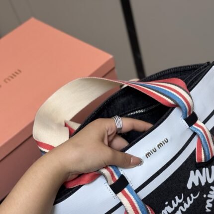 The new canvas lunch box bag features a simple and personalized black and white color scheme