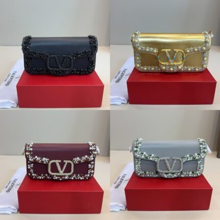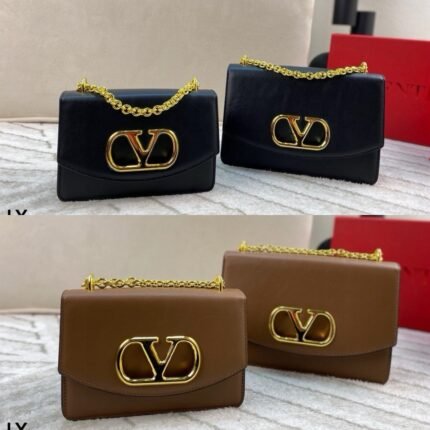 This is Valentino’s iconic V-logo chain bag, centered on the brand’s classic V-shaped metal buckle design. Paired with a textured