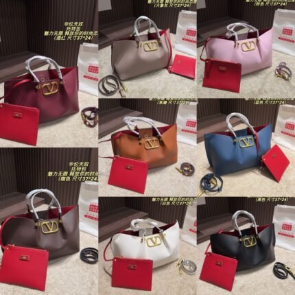 Valentino Textured Leather Tote Bag – Multiple Colors, Versatile Handheld & Shoulder Style(24*17/37*24)