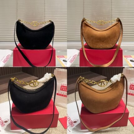 Valentino V-Logo Crescent Bag – Suede Multi-Color Chain Underarm Bag(Small size: 27*17 Large size: 30*15)