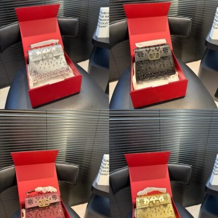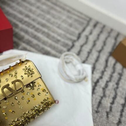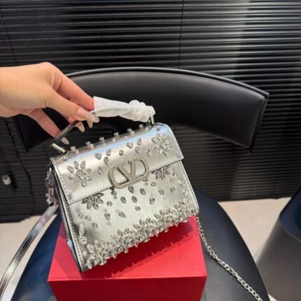 Valentino Star-Diamond V-Logo Tote Bag – Multi-Color Leather Chain Crossbody Bag, Light Luxury Evening-Style Women’s Bag (18*15cm)