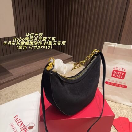 This is Valentino’s iconic crescent bag, centered on the brand’s classic V-shaped metal buckle + chain decoration design. Made of