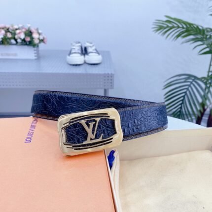 This Louis Vuitton silver V-buckle dark blue belt has become a leader in the fashion industry with its unique charm