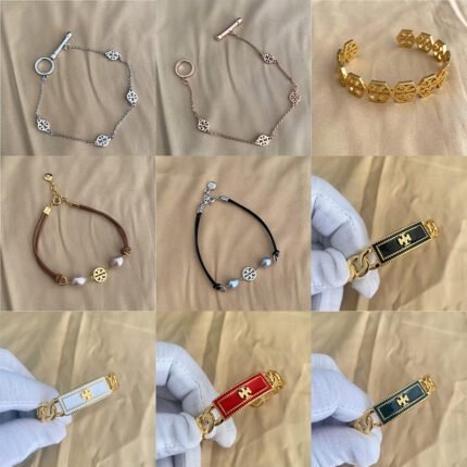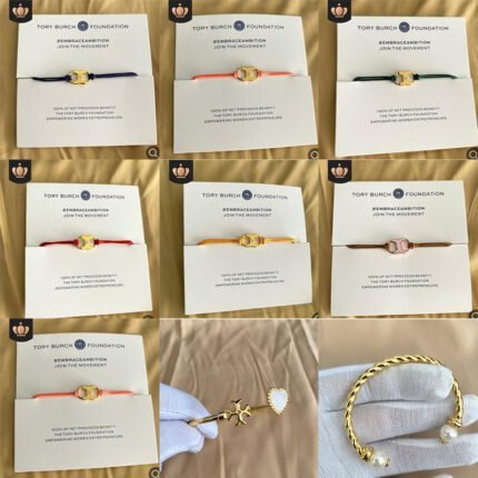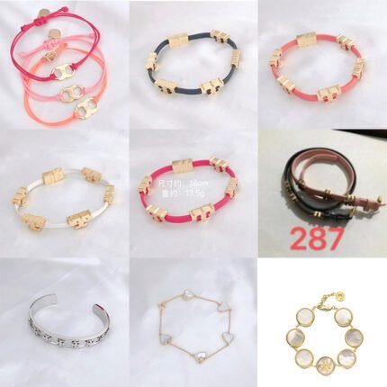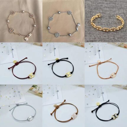 Multi colored leather rope interwoven bracelet, simple chain sparkling zircon double T bracelet, golden sugar melon open bracelet
