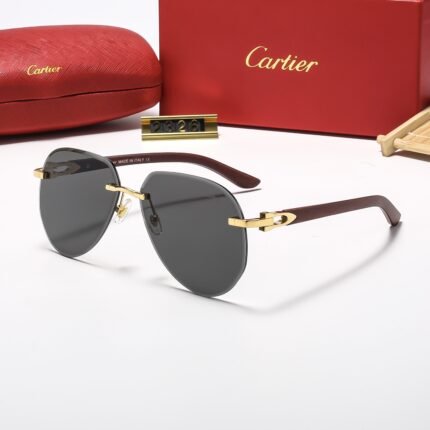 Cartier 2826 Rimless Sunglasses with Wooden Temples – Multiple Colors Available, Luxury Sunglasses