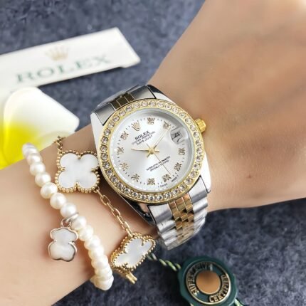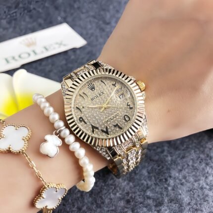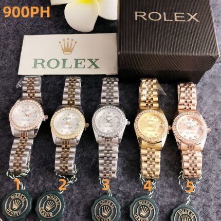Rolex 900PH series watches embody opulent sophistication, featuring round dials with sparkling crystal-encrusted bezels, intricately designed metal bracelets in styles