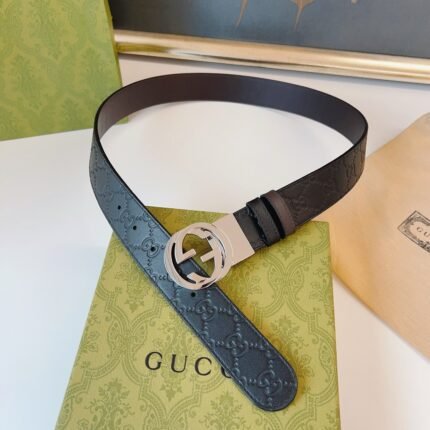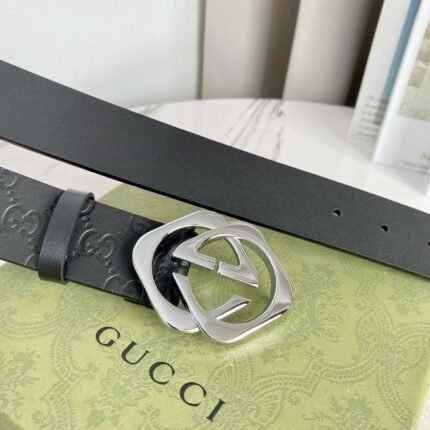 Gucci classic silver buckle black belt, simple and elegant, low-key and luxurious