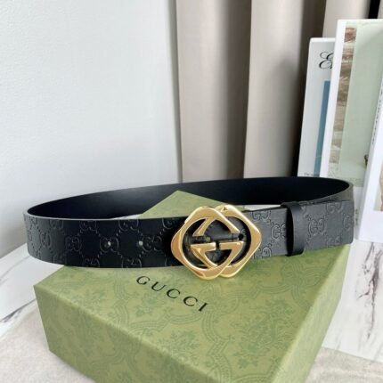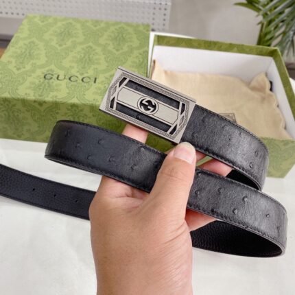 Gucci black metal buckle belt, simple and elegant, luxurious