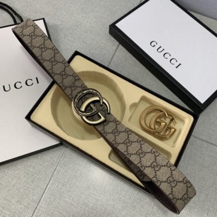 Gucci brown and beige classic double G buckle belt, simple and elegant, low-key and luxurious
