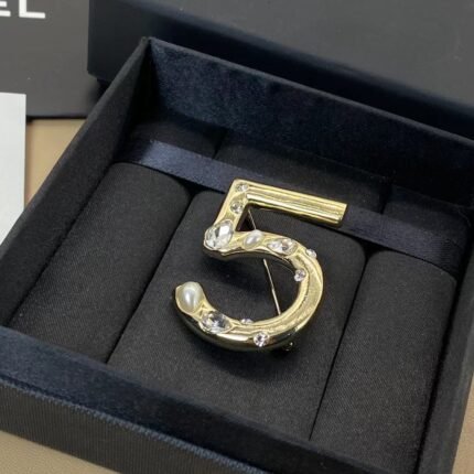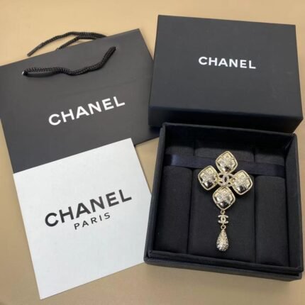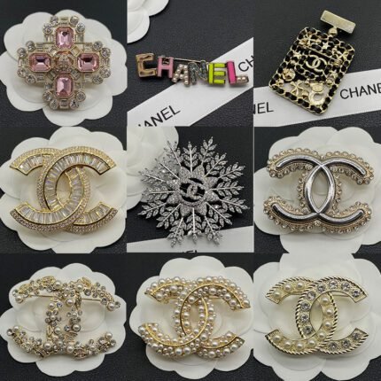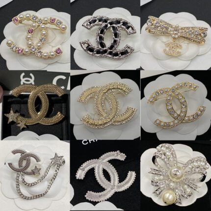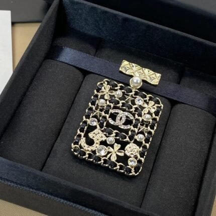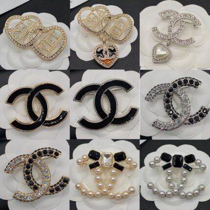 Fashionable and versatile white heart-shaped flower brooch, white gold chain zircon double C heart-shaped brooch, gold long plate polygonal long plate hollow letter design brooch