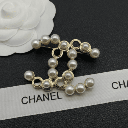 Fashionable and versatile, sparkling multi-color zircon pearl double C brooch, white gold pearl bow zircon inlaid with high-end temperament brooch