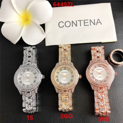 CONTANA watch with round diamond bezel and premium dial with steel band