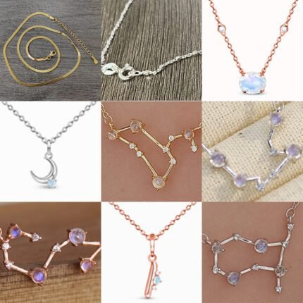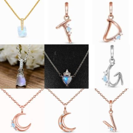 2024 New Rose Gold Crescent Sapphire Diamond Pendant Necklace