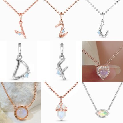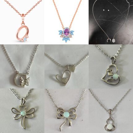 2024 New Silver Chain Elliptical Gemstone with Diamond Pendant Necklace