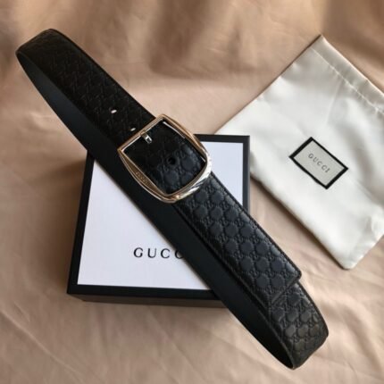 Gucci silver buckle black textured belt interprets the brand’s extraordinary charm with excellent quality and exquisite craftsmanship. Made of high-quality