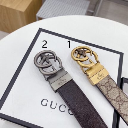 Gucci Bee Double G Buckle brown and beige intertwined belt, simple and elegant, low-key and elegant