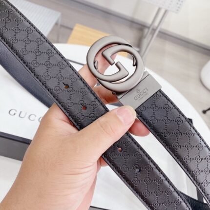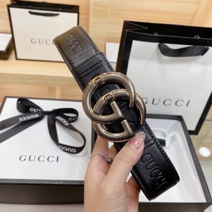 Gucci double G texture buckle black texture belt, simple and elegant, elegant and luxurious