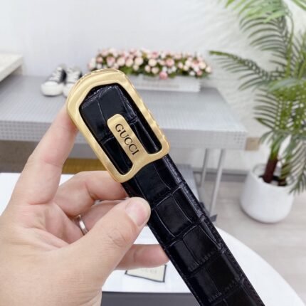 Gucci gold square buckle black crocodile pattern belt, simple and elegant, low-key luxury