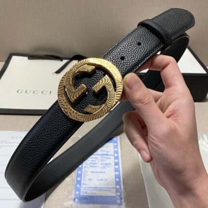 Gucci textured double G buckle black belt, simple and elegant, noble and elegant