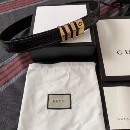 Gucci black crocodile pattern gold buckle belt, luxurious and refined, noble and elegant