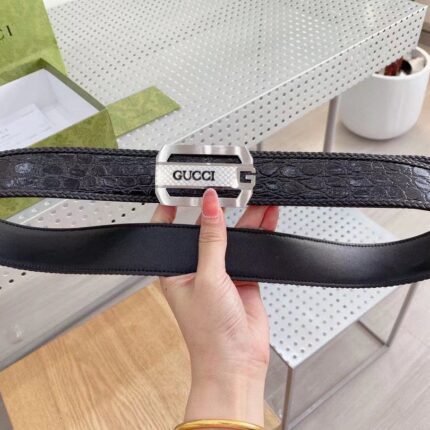 This Gucci square buckle black crocodile pattern belt highlights the wearer’s noble temperament with its excellent quality and unique design.