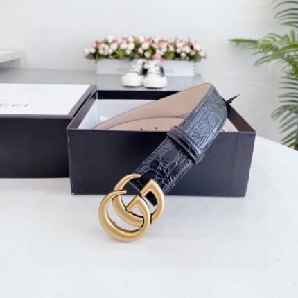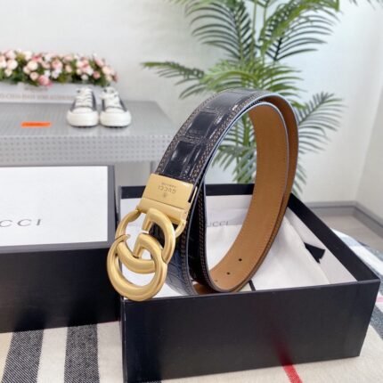 Gucci double G crocodile pattern black belt, simple and elegant, noble and luxurious