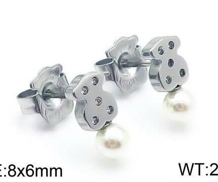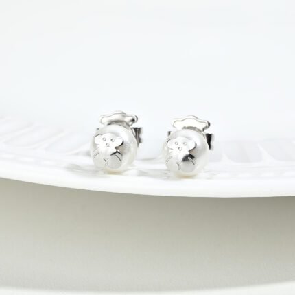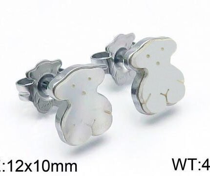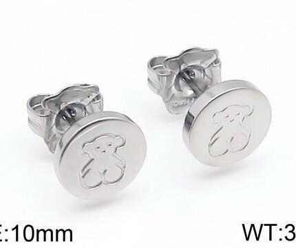 TOUS 925 Silver Spanish Bear White Background Disc Engraved Earstuds