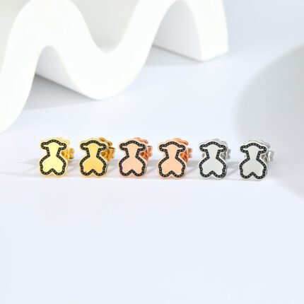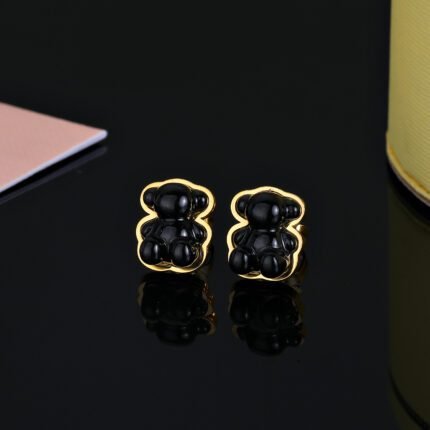 TOUS presents this 925 silver black circular dot diffusion hollow bear earring with ingenuity, cleverly blending classic and modern design