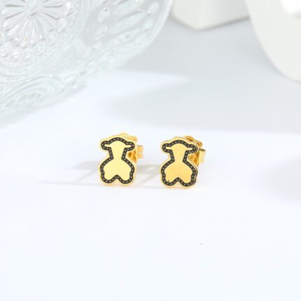 TOUS 925 silver black disc dot diffusion hollow bear earrings