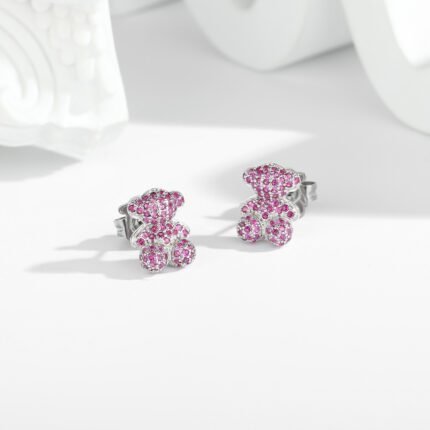 TOUS Craftsmanship Presentation -925 Silver Spanish Three Dimensional Bear Full of Pink Zircon Inlaid Earstuds. This earring, with its unique