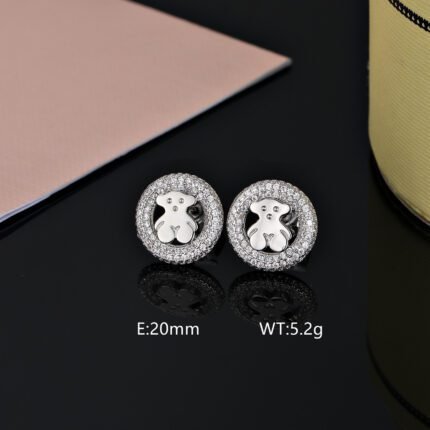 TOUS has ingeniously launched this 925 silver circular transparent zircon set with embedded teddy bear earrings. This earring brings a