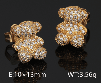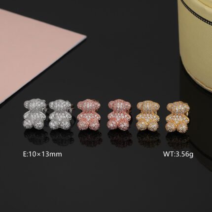 TOUS 925 Silver Spanish Stereoscopic Bear with Transparent Zircon Inlaid Earstuds