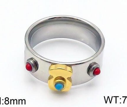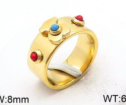 TOUS Stainless Steel Circular Bear Red Blue Zircon Decorative Ring