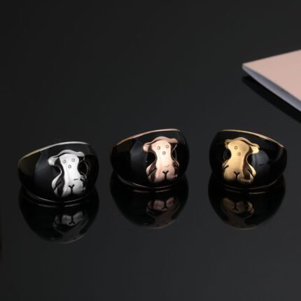 TOUS once again presents this stainless steel material, black background primary color teddy bear ring with its unique aesthetic perspective
