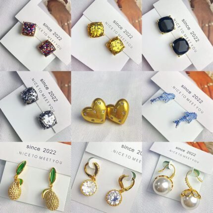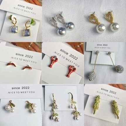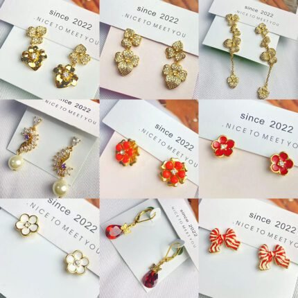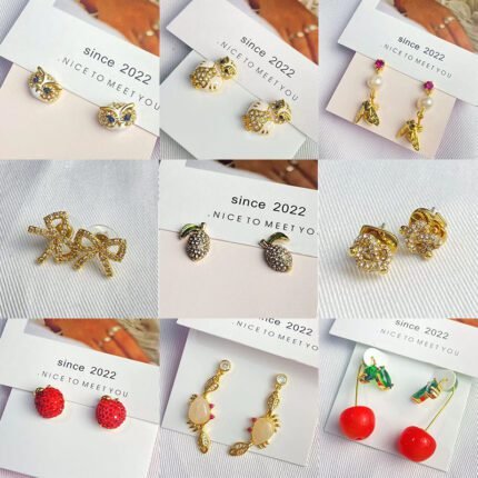 Multi style color flower earrings, zircon cherry earrings, zircon flower earrings