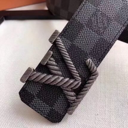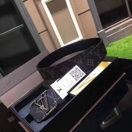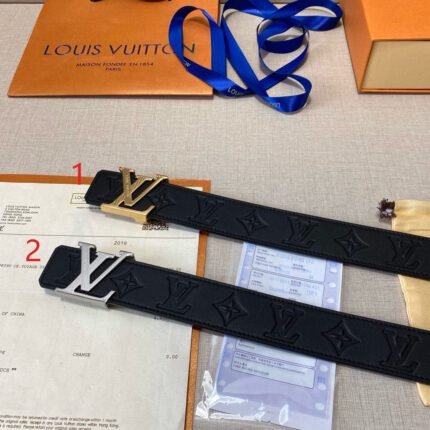 This Louis Vuitton black belt with gold buckle is crafted with extreme ingenuity, perfectly integrating traditional craftsmanship with modern aesthetics.