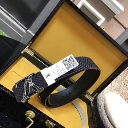 This Louis Vuitton V-shaped buckle black textured belt combines the brand’s traditional craftsmanship with modern design, demonstrating extraordinary nobility and
